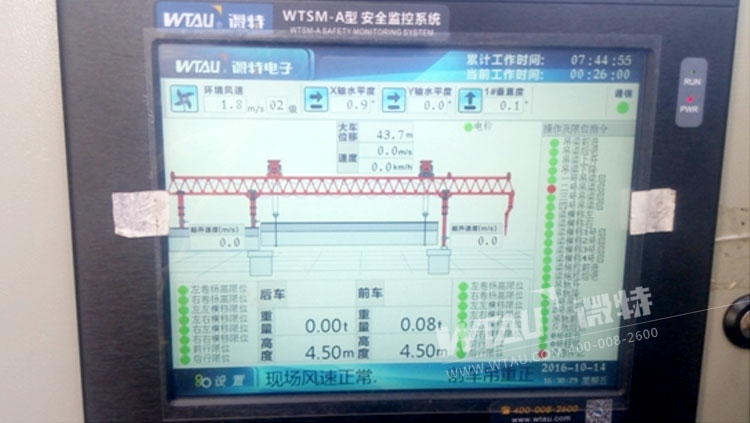 圖為T(mén)J165架橋機(jī)配備的微特WTAM-A型安全監(jiān)控系統(tǒng)