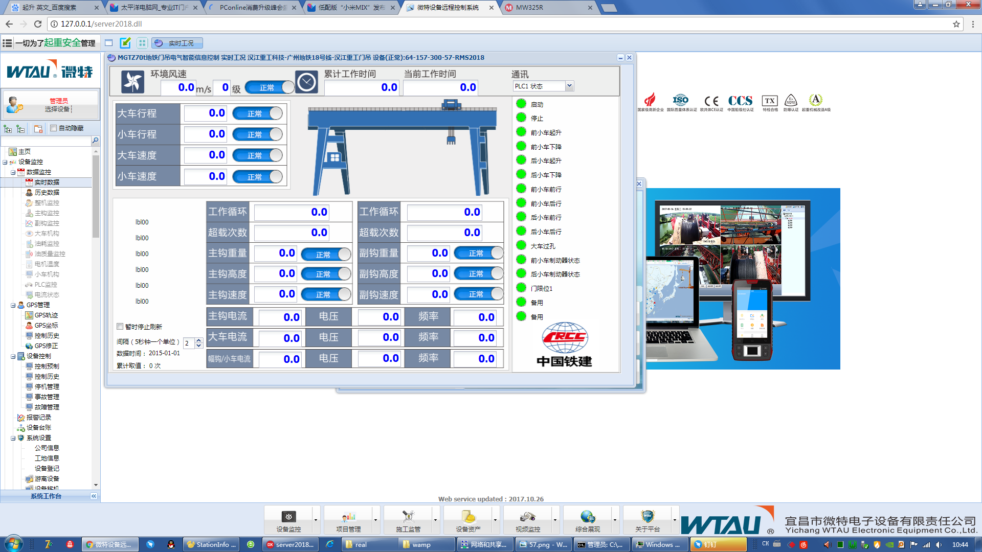 MGTZ70t地鐵門吊電氣智能信息控制系統(tǒng),包含門吊數(shù)據(jù)監(jiān)控和視頻監(jiān)控兩部分。實(shí)現(xiàn)門吊使用過程中全方位的數(shù)據(jù)監(jiān)控和關(guān)鍵部位的視頻圖像監(jiān)控以及以上數(shù)據(jù)和圖像的存儲等功能??蓪?shí)現(xiàn)遠(yuǎn)程PC電腦實(shí)時遠(yuǎn)程查詢監(jiān)控,數(shù)據(jù)回放、曲線擬合等功能;可實(shí)現(xiàn)手機(jī)APP遠(yuǎn)程實(shí)時查詢設(shè)備狀態(tài),數(shù)據(jù)抽取查詢等功能。