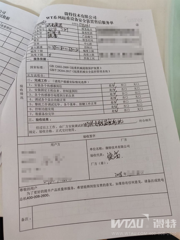 微特技術(shù)有限公司為此次項(xiàng)目提供的WTSM-A型起重機(jī)安全監(jiān)控管理系統(tǒng)是嚴(yán)格安裝《GB/T 28264-2017起重機(jī)械安全監(jiān)控管理系統(tǒng)》標(biāo)準(zhǔn)設(shè)計(jì)和生產(chǎn)的,為設(shè)備的安全運(yùn)行提供了可靠的保障。