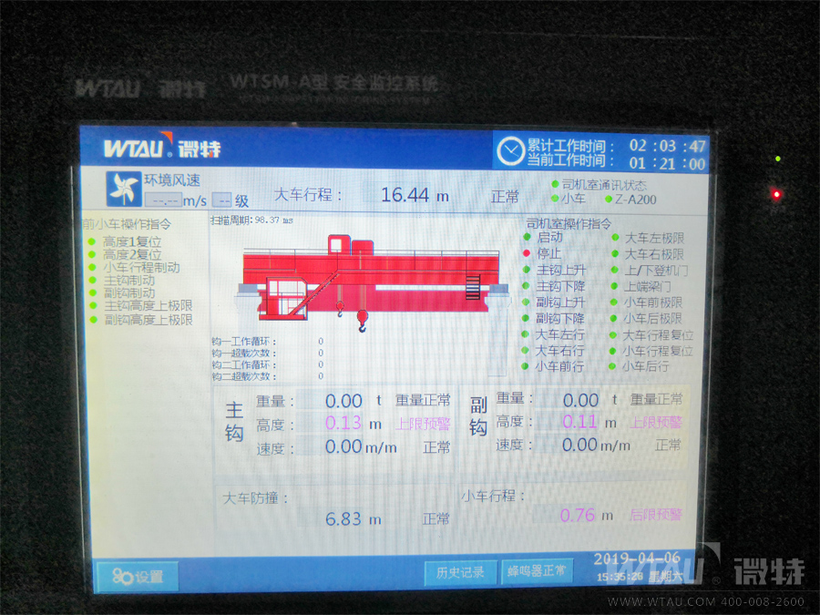 微特WTSM-A型起重機(jī)安全監(jiān)控系統(tǒng)具有實(shí)時(shí)監(jiān)控,動(dòng)態(tài)顯示,聲光報(bào)警,數(shù)據(jù)存儲(chǔ),斷電記憶以及密碼保護(hù)等功能,且儀表本身設(shè)計(jì)具有抗干擾性強(qiáng),操作界面方面,通用性強(qiáng)等優(yōu)點(diǎn)。經(jīng)過微特技術(shù)工程師的現(xiàn)場安裝調(diào)試完后順利通過了客戶及當(dāng)?shù)靥貦z機(jī)構(gòu)的驗(yàn)收,贏得了客戶的認(rèn)可,也為我們今后在淄博地區(qū)業(yè)務(wù)的深入開展起到了一個(gè)良好的開端。