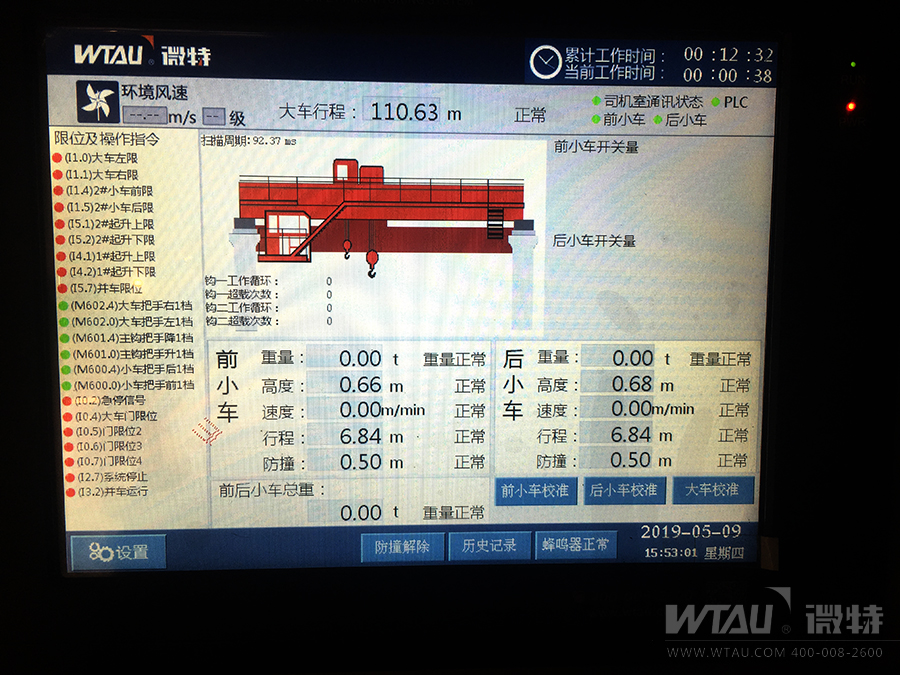 ▲橋機(jī)運行監(jiān)測可視狀態(tài)