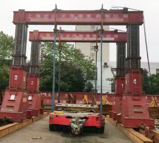 全液壓式門式起重機起重量單梁175t,雙梁起吊可達400t,整個門機使用液壓油為動力進行雙梁之間的跨度調節(jié),單梁兩鉤距的調節(jié),起升高度的調節(jié),大車軌道和起重量可根據(jù)現(xiàn)場起重需求任意更換,適合多種復雜環(huán)境下的作業(yè)。整機供電之后無任何電氣控制回路,各動作均為手柄操作直接驅動液壓換向閥完成。