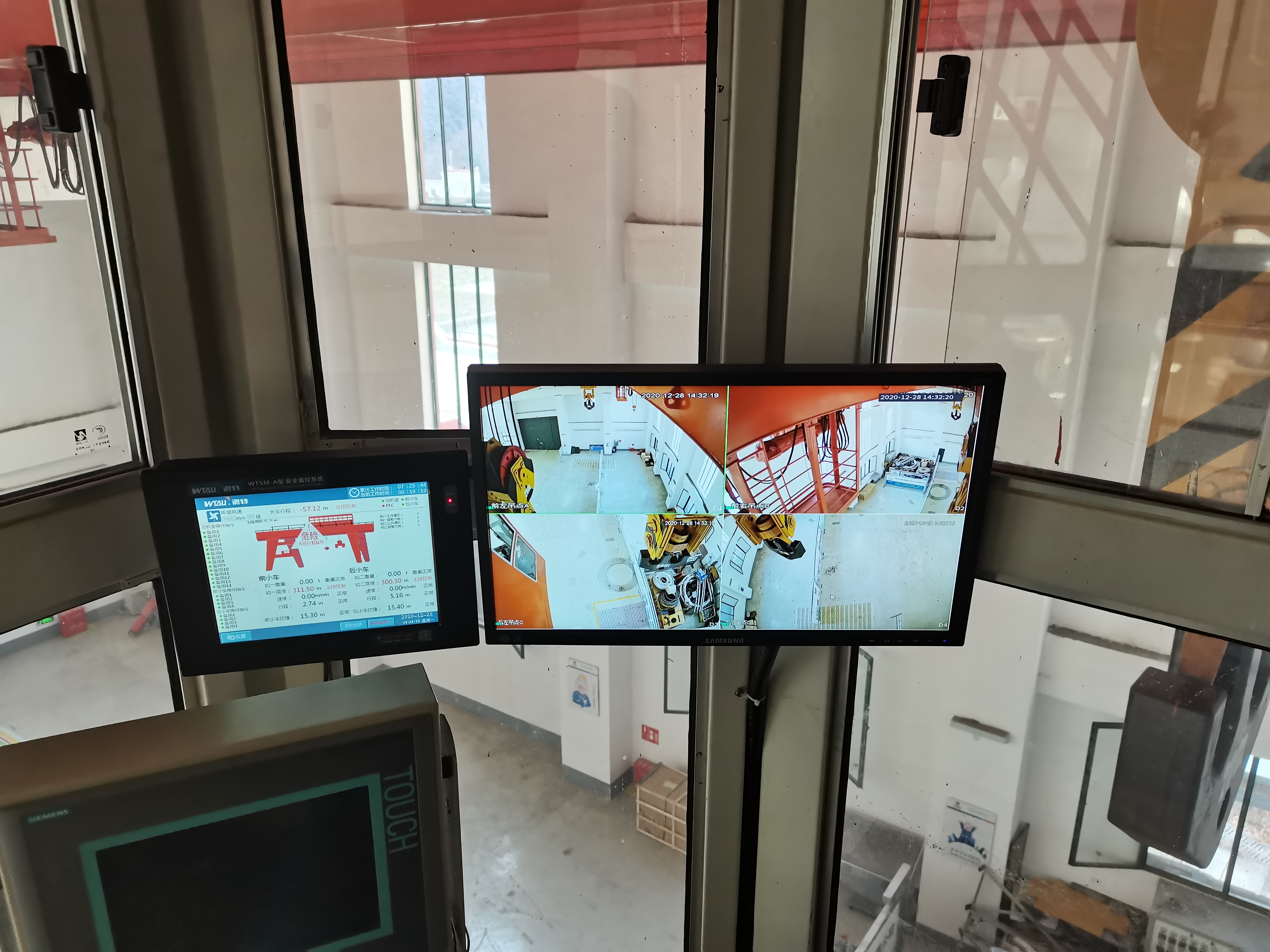 實現(xiàn)了在司機室實時顯示起重機各機構(gòu)數(shù)據(jù),并清晰的顯示大車行走、吊點等監(jiān)控區(qū)域的監(jiān)控畫面。同時,完成數(shù)據(jù)及視頻畫面的存儲,使司機在操作設(shè)備時可以更直觀的了解整車設(shè)備的運行情況,實時的做出相應(yīng)的決策。為吊裝工作的可靠性,橋機運行的安全性提供了一份可視化的保障。