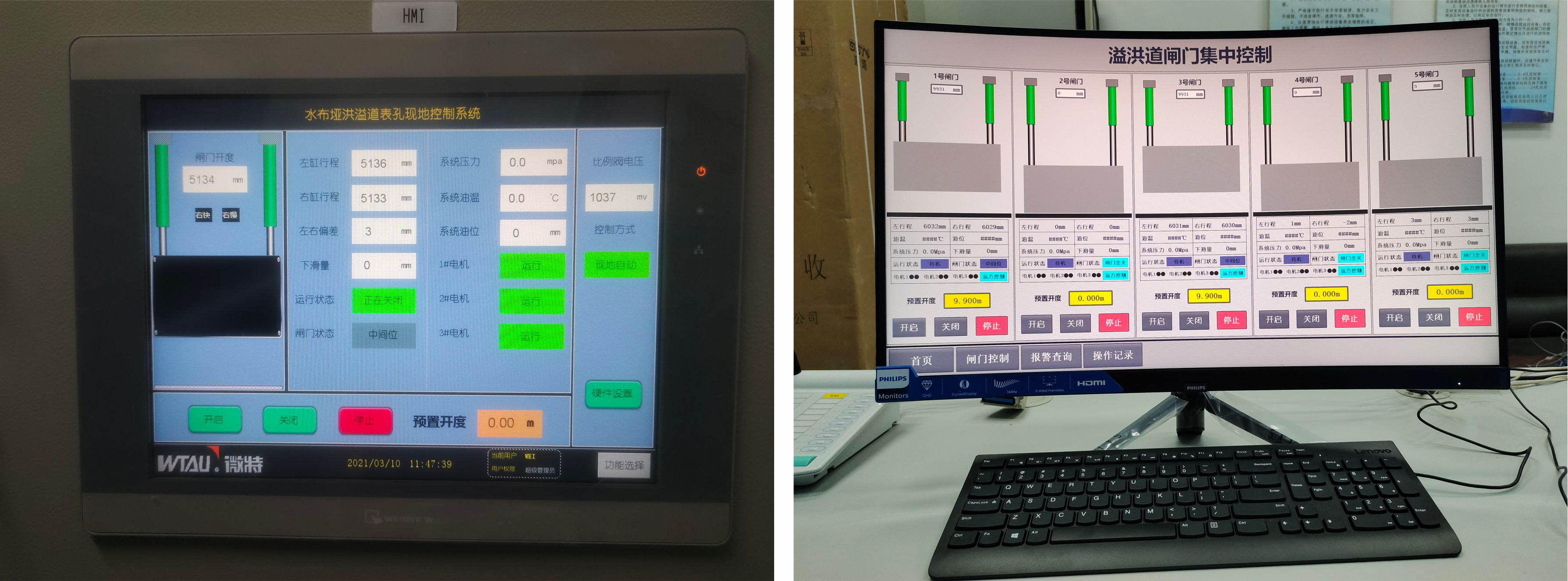 本次微特主要負責對水布埡電廠溢洪道閘門電氣控制系統(tǒng)進行改造、升級、換新,包括五套控制柜(包含柜內(nèi)元器件)、五套動力柜(包含柜內(nèi)元器件)、集中控制系統(tǒng)、開度儀、電線電纜等。