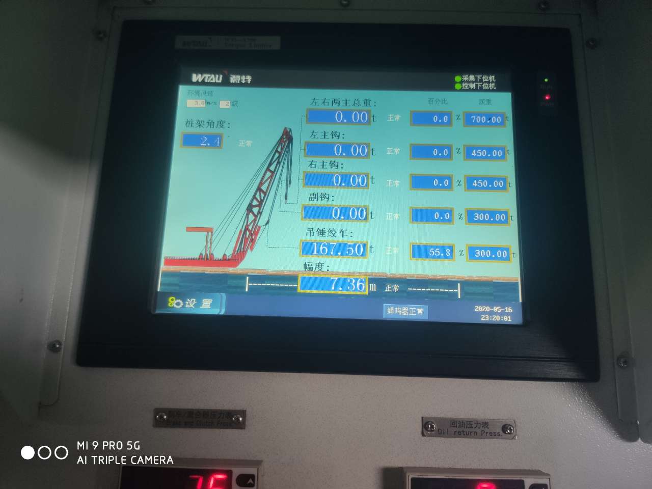 ▲應(yīng)用于三航樁20的WTL-A700力矩限制器儀表