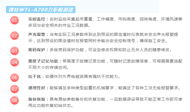 此次為佛山高明珠碼頭合作的全幅式門座機(jī)安裝的WTL-A700起重機(jī)力矩限制器為微特自主設(shè)計(jì)研發(fā)生產(chǎn)的產(chǎn)品,是一款多功能、高性能、智能人機(jī)交互的高端起重機(jī)安全監(jiān)控裝置,適用于電吊、固定吊等起重設(shè)備。