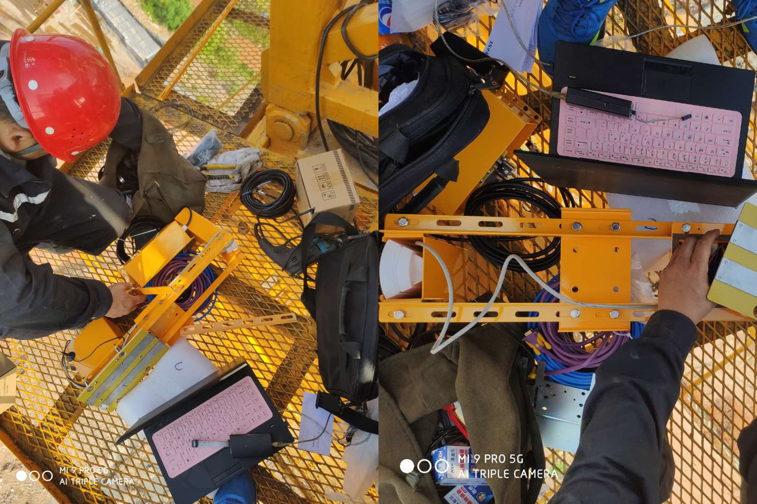 雨后的工地滿是泥濘,微特售后服務工程師到達現(xiàn)場立即馬上塔機向現(xiàn)場人員演示吊鉤可視化安裝調試方法,邊演示邊講解,解答用戶所有疑問。