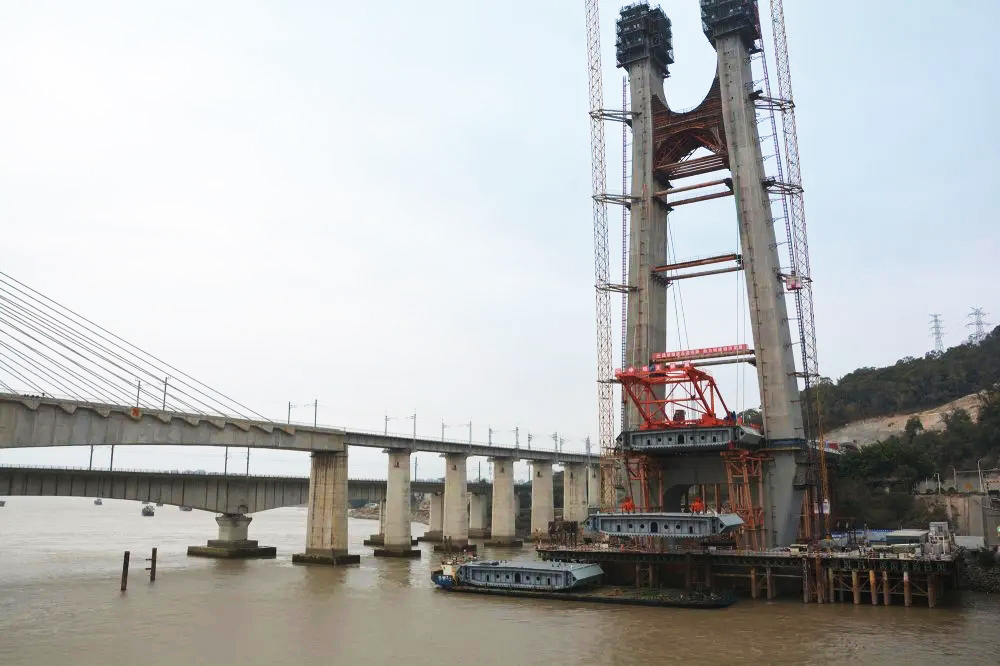 其中烏龍江特大橋位于福州倉(cāng)山區(qū)和閩侯縣境內(nèi),其下游約220米就是324國(guó)道烏龍江公路橋,全長(zhǎng)868.188米,跨324國(guó)道和烏龍江。本橋?yàn)殡p線(xiàn)橋,全長(zhǎng)868.178米,共計(jì)14個(gè)墩臺(tái),總投資約1.33億元。該橋采用雙線(xiàn)矩形空心橋臺(tái),主跨為(144+288+144)米部分斜拉橋,為世界范圍內(nèi)同類(lèi)橋型最大跨度。