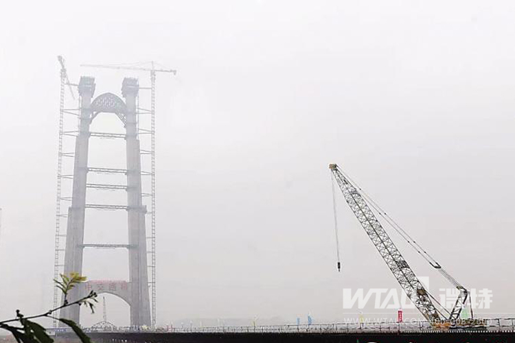 據(jù)楚天金報(bào)消息,“湖北造”大橋又一次完成“世界級(jí)”突破。蒙西華中鐵路洞庭湖大橋--世界最大跨度的三塔鐵路斜拉橋。該大橋由中鐵大橋局第五工程有限公司負(fù)責(zé)橋墩施工,在施工過(guò)程中,現(xiàn)場(chǎng)三臺(tái)25T履帶式起重機(jī)力矩限制器產(chǎn)品由宜昌市微特電子設(shè)備有限責(zé)任公司提供。