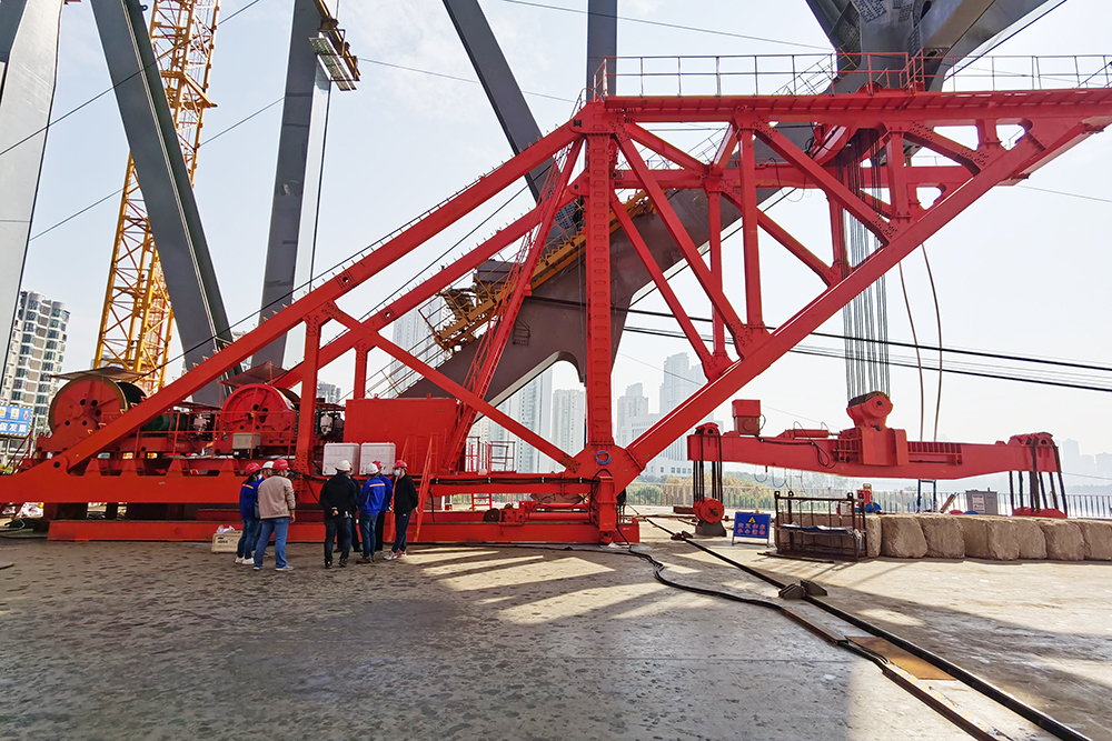 施工現(xiàn)場機器轟鳴,江漢七橋正在進行上部結(jié)構(gòu)鋼梁安裝,有的在焊接,有的在吊裝桿件,工序有序穿插,而微特本次主要給架梁起重機加裝安全監(jiān)控管理系統(tǒng),完成該架梁起重機安全監(jiān)控管理系統(tǒng)的設(shè)計、現(xiàn)場安裝、調(diào)試及后續(xù)使用服務(wù)。