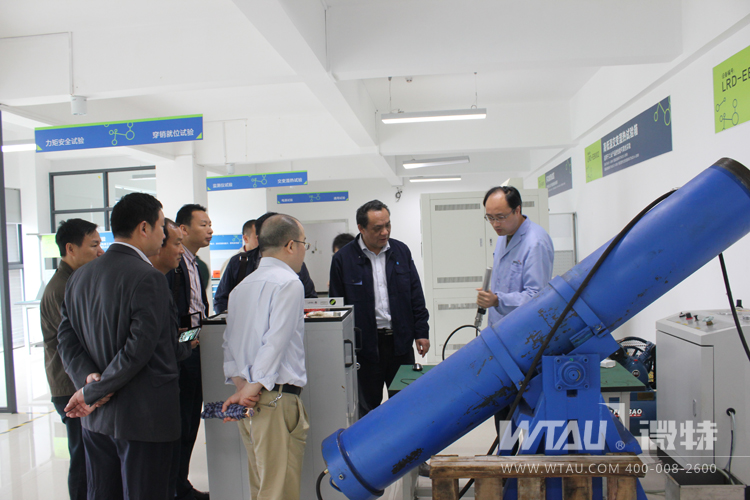在微特投建的湖北省智能吊裝設(shè)備研發(fā)檢測中心,技術(shù)總監(jiān)高鈺敏詳細(xì)向張總一行介紹了檢測中心的設(shè)備與使用情況。張總對微特投入這些全新的檢測實(shí)驗(yàn)設(shè)備用于研發(fā)和保障產(chǎn)品品質(zhì)表示贊賞。當(dāng)看到正在做深水實(shí)驗(yàn)的穿銷就位傳感器時(shí),清江公司張總一行對此都特別感興趣,微特電子高總特地對新研發(fā)的就位傳感器作了詳細(xì)的講解和說明。
