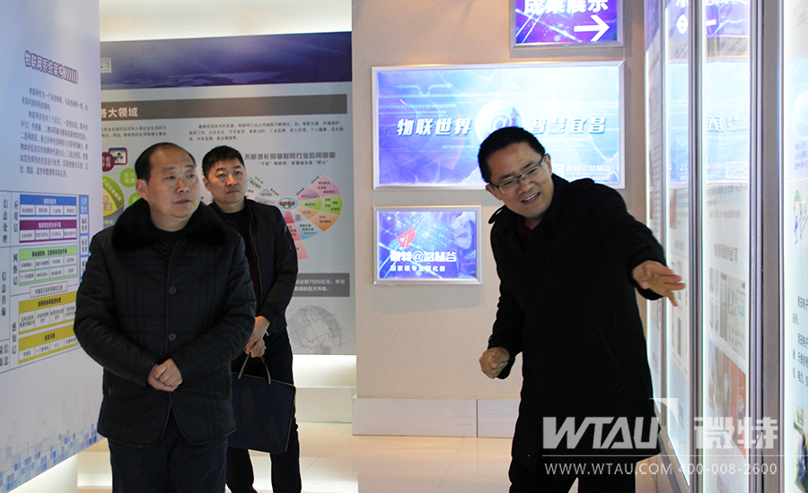 在孵化器展示廳聶總向黃書(shū)記介紹傳感物聯(lián)相關(guān)的在孵企業(yè)