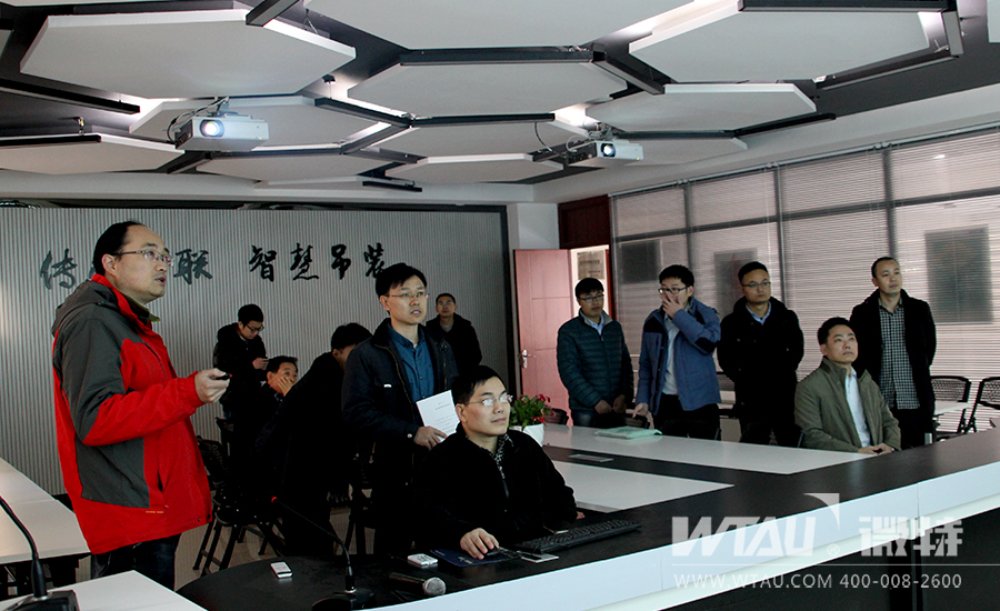 技術(shù)總監(jiān)高鈺敏向林院長(zhǎng)一行介紹微特智慧吊裝監(jiān)控管理平臺(tái),在介紹過程中林院長(zhǎng)不時(shí)提問與高總交流平臺(tái)的管理作用和未來方向。