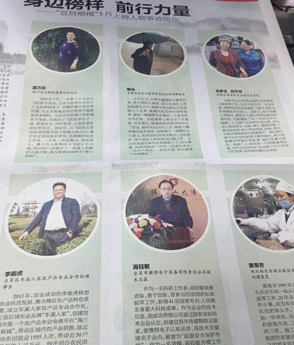 而在本期的第A11版德耀中華“身邊榜樣、前行力量”專題中,微特技術(shù)總監(jiān)高鈺敏先生榮登“宜昌楷模”5月上榜人物。
