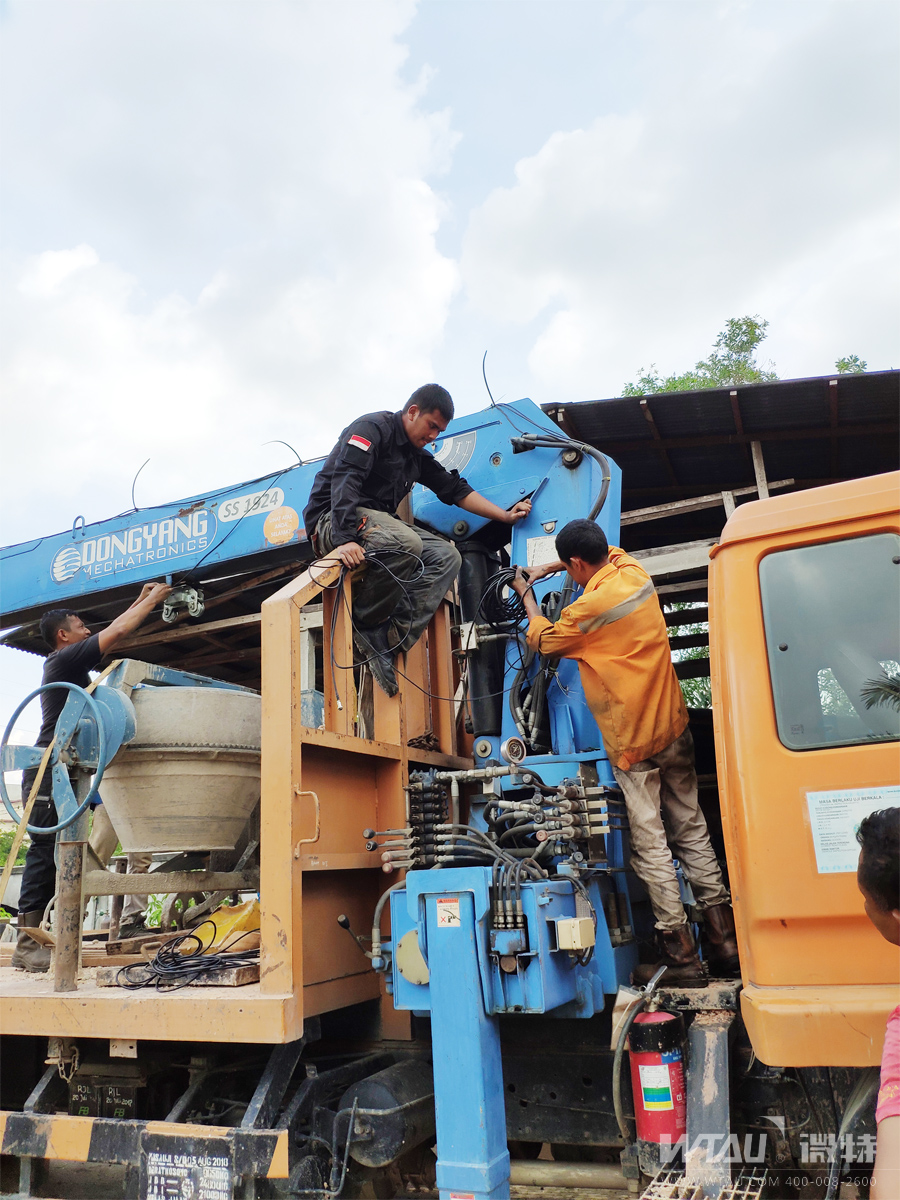▲圖為準(zhǔn)備進(jìn)入泗水現(xiàn)場吊車安裝的微特工程師