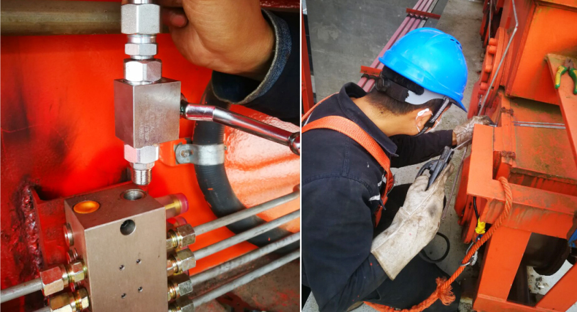 ▲滑潤(rùn)系統(tǒng)管路對(duì)接及滑潤(rùn)系統(tǒng)測(cè)試