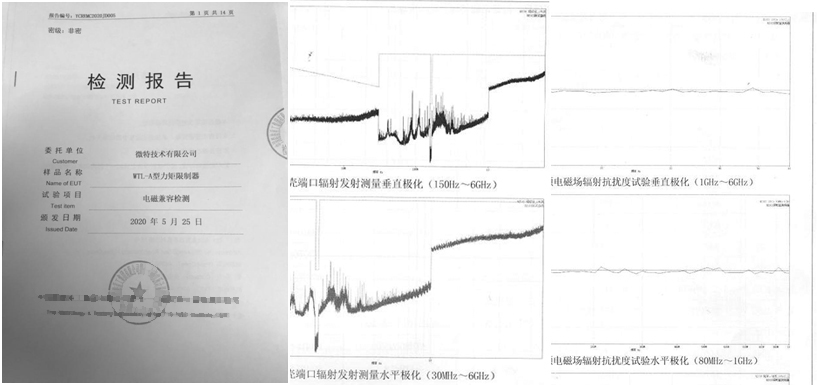 從國(guó)標(biāo)一級(jí)嚴(yán)苛程度逐漸增強(qiáng)到四級(jí)嚴(yán)苛程度,經(jīng)過(guò)整整一天的測(cè)試,儀表在實(shí)驗(yàn)中運(yùn)行穩(wěn)定,表現(xiàn)出了良好的抗干擾性能。其中在外殼端口輻射發(fā)射實(shí)驗(yàn)中,微特生產(chǎn)的力矩限制器整體表現(xiàn)良好,在各檢測(cè)頻率段均達(dá)標(biāo)準(zhǔn),未超過(guò)標(biāo)準(zhǔn)要求的極限值;在射頻電磁場(chǎng)輻射抗擾度實(shí)驗(yàn)中,設(shè)備在整個(gè)測(cè)試過(guò)程中面板保持顯示正常,未發(fā)生運(yùn)行錯(cuò)誤及異常報(bào)警現(xiàn)象,在干擾頻率從80MHz到6GHz的要求范圍內(nèi)運(yùn)行平穩(wěn),亦達(dá)到了軍工標(biāo)準(zhǔn)。