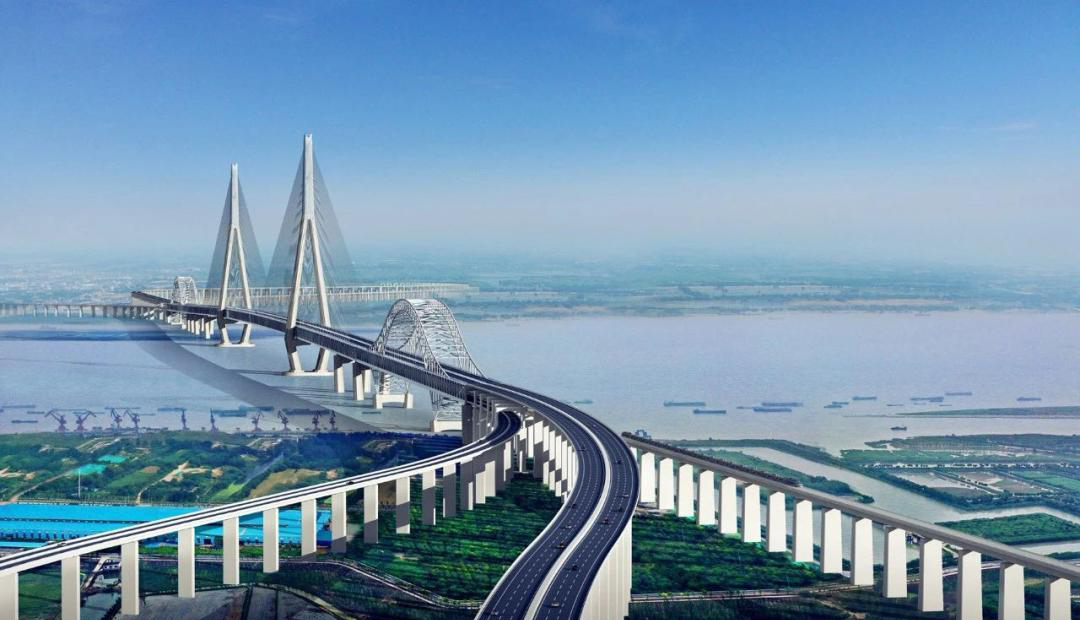 常泰長江大橋位于泰州大橋與江陰大橋之間,主航道橋采用雙層斜拉橋方式。該項(xiàng)目創(chuàng)下三項(xiàng)世界第一,一是世界上首座集高速公路、城際鐵路、一級(jí)公路為一體的過江通道,二是其主航道主跨1176米的斜拉橋,將刷新公鐵兩用斜拉橋的世界紀(jì)錄;三是兩側(cè)連接天星洲和錄安洲的兩座拱橋?qū)⒊蔀槭澜缟献畲罂缍鹊墓F兩用鋼桁梁拱橋。