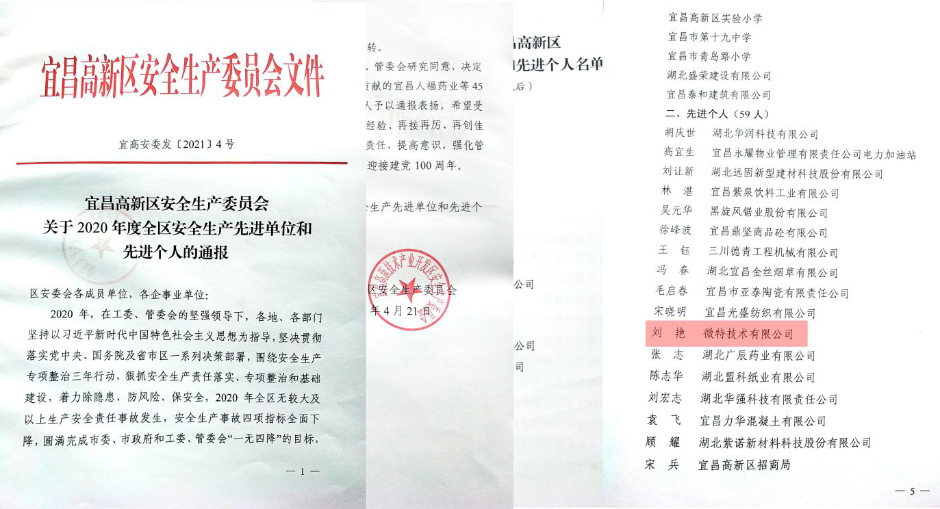 為肯定成績(jī),激勵(lì)先進(jìn),經(jīng)過(guò)工委、管委會(huì)研究同意,會(huì)上對(duì)2020年度安全生產(chǎn)工作作出突出貢獻(xiàn)的59名先進(jìn)個(gè)人予以了通報(bào)表?yè)P(yáng),微特技術(shù)有限公司訂單保障中心總經(jīng)理劉艷被授予“安全生產(chǎn)先進(jìn)個(gè)人”稱號(hào)。