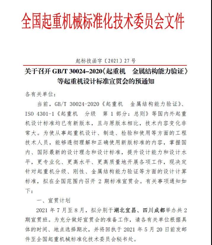 盛會(huì)云集的7月當(dāng)然不止江西的這一場(chǎng)。行業(yè)精英的集結(jié),知識(shí)的分享;思想的碰撞,靈感的激發(fā);資源的匯聚,業(yè)務(wù)的開拓,合作的達(dá)成;老友的相聚,新友的相遇;一切盡在... 2021年7月,即將在湖北宜昌舉行,由微特技術(shù)有限公司承辦的關(guān)于GB/T 30024-2020《起重機(jī) 金屬結(jié)構(gòu)能力驗(yàn)證》等起重機(jī)設(shè)計(jì)標(biāo)準(zhǔn)宣貫會(huì)第一期,屆時(shí)起重機(jī)領(lǐng)域精英薈萃,大咖云集。
