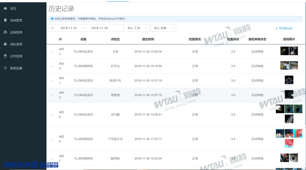 數(shù)據(jù)導(dǎo)出功能:管理員可在PC端導(dǎo)出按時間段分設(shè)備導(dǎo)出設(shè)備點(diǎn)檢的所有數(shù)據(jù),生成表格,該系統(tǒng)可很好取代之前項(xiàng)目上的紙質(zhì)設(shè)備檢查表格及交接班檢查記錄表格。不增加項(xiàng)目設(shè)備使用人員的日常工作量。