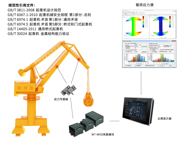 門座式起重機(jī)應(yīng)力在線監(jiān)測(cè)系統(tǒng),是根據(jù)結(jié)構(gòu)應(yīng)力和材料強(qiáng)度計(jì)算開(kāi)發(fā)制造的能實(shí)時(shí)監(jiān)測(cè)、顯示主臂在各種載荷