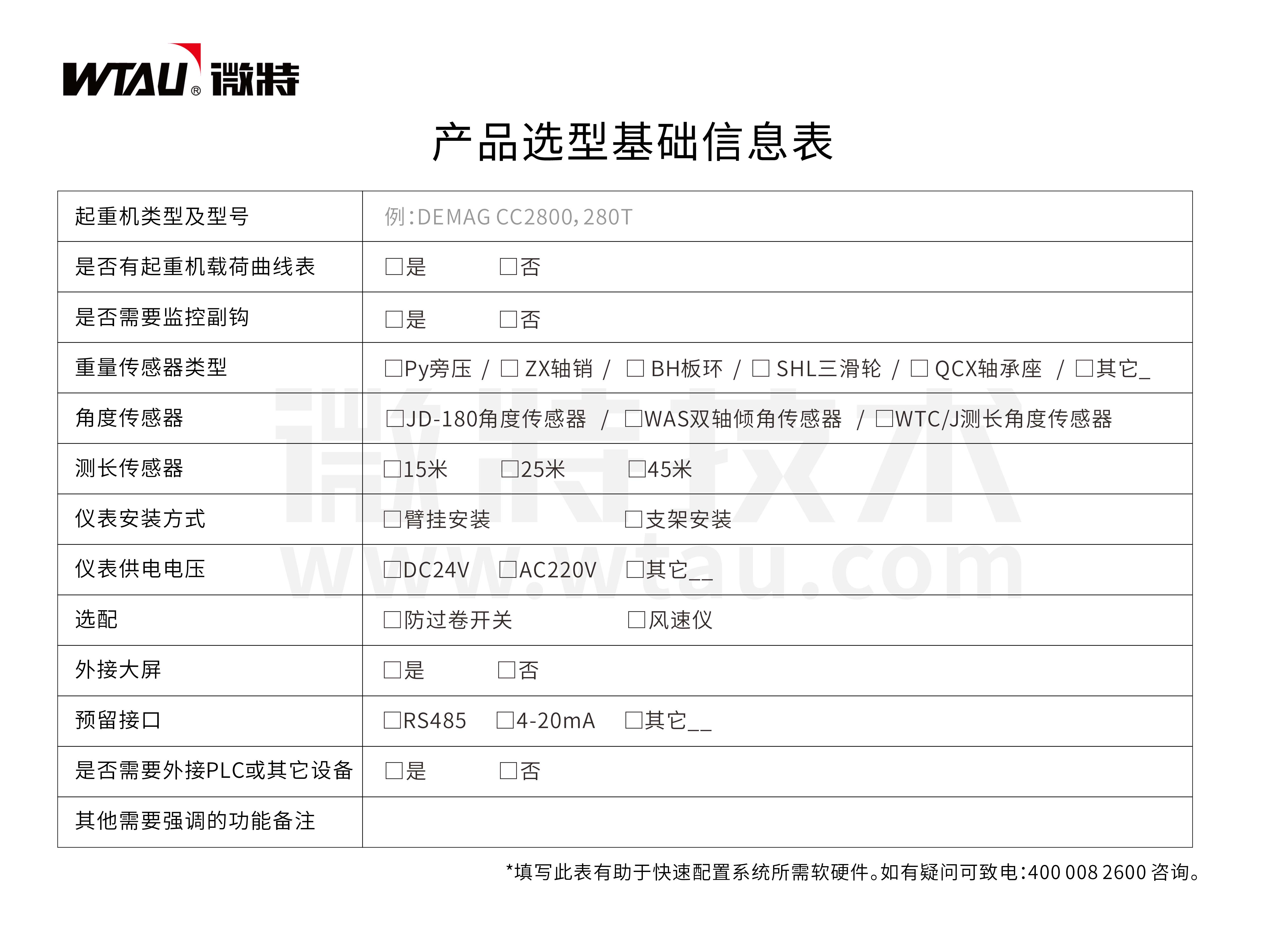 當(dāng)用戶在選型過程中未能找到合適的力矩限制器解決方案時(shí),可選擇與我司溝通選擇非標(biāo)定制的力矩限制器。定制力矩限制器可根據(jù)實(shí)際需求選擇適用的力矩限制器儀表,常用WTL-A700WTL-A200力矩限制器儀表作為顯示儀表,用戶也可選擇其它型號(hào)。