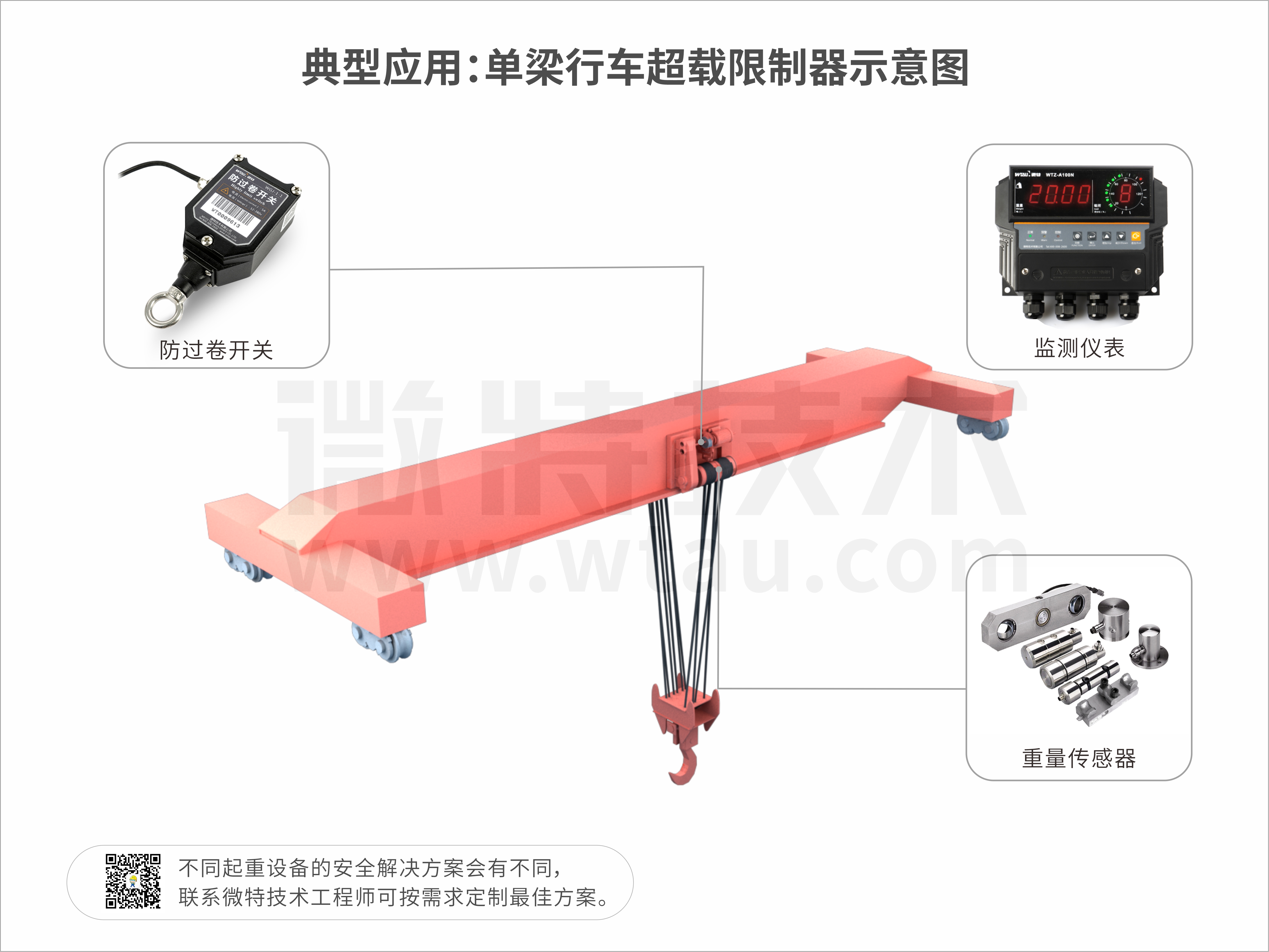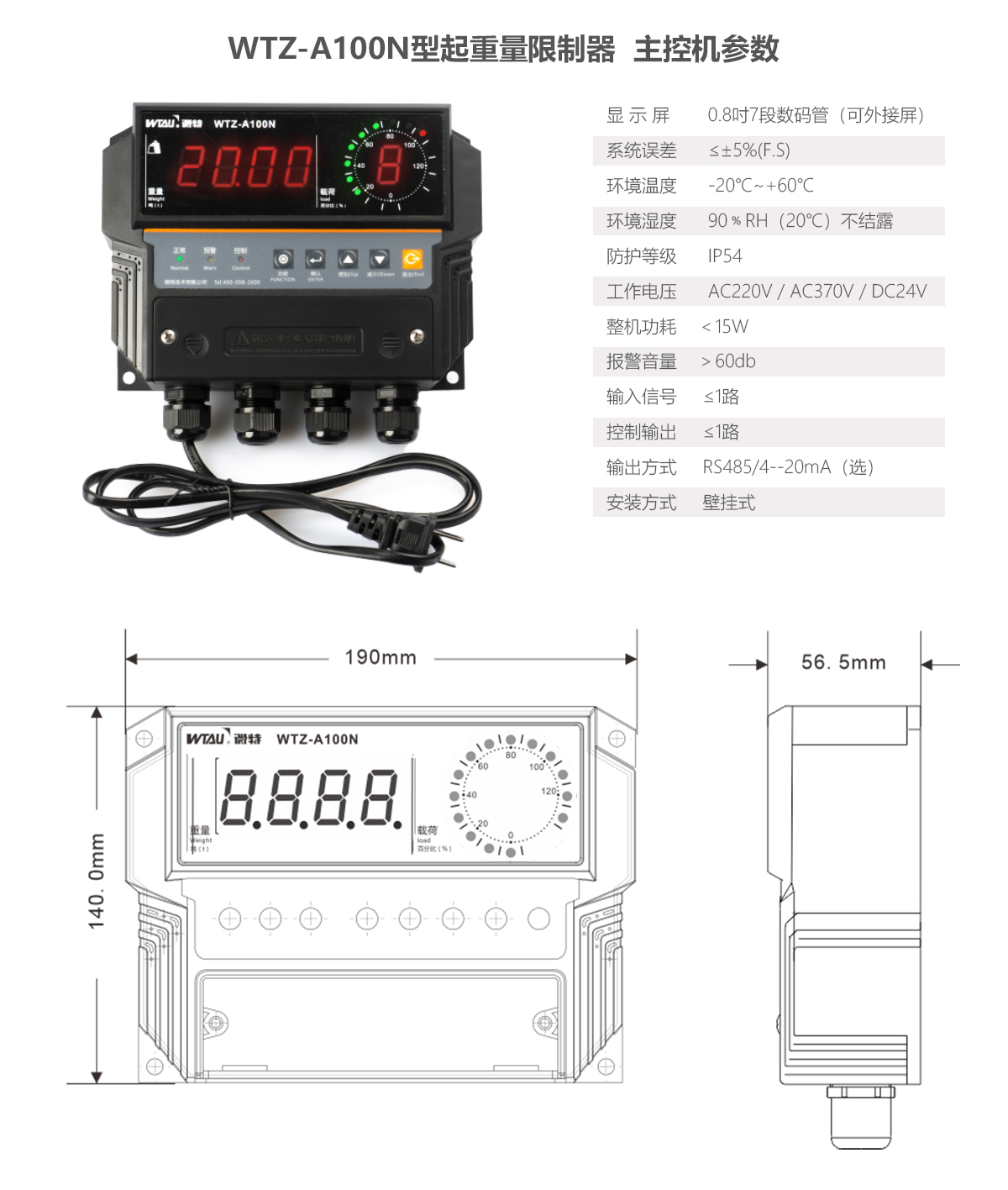 WTZ-A100N起重量限制器適用于電動葫蘆、橋機(jī)、龍門吊等只需要1路重量監(jiān)測的起重設(shè)備。