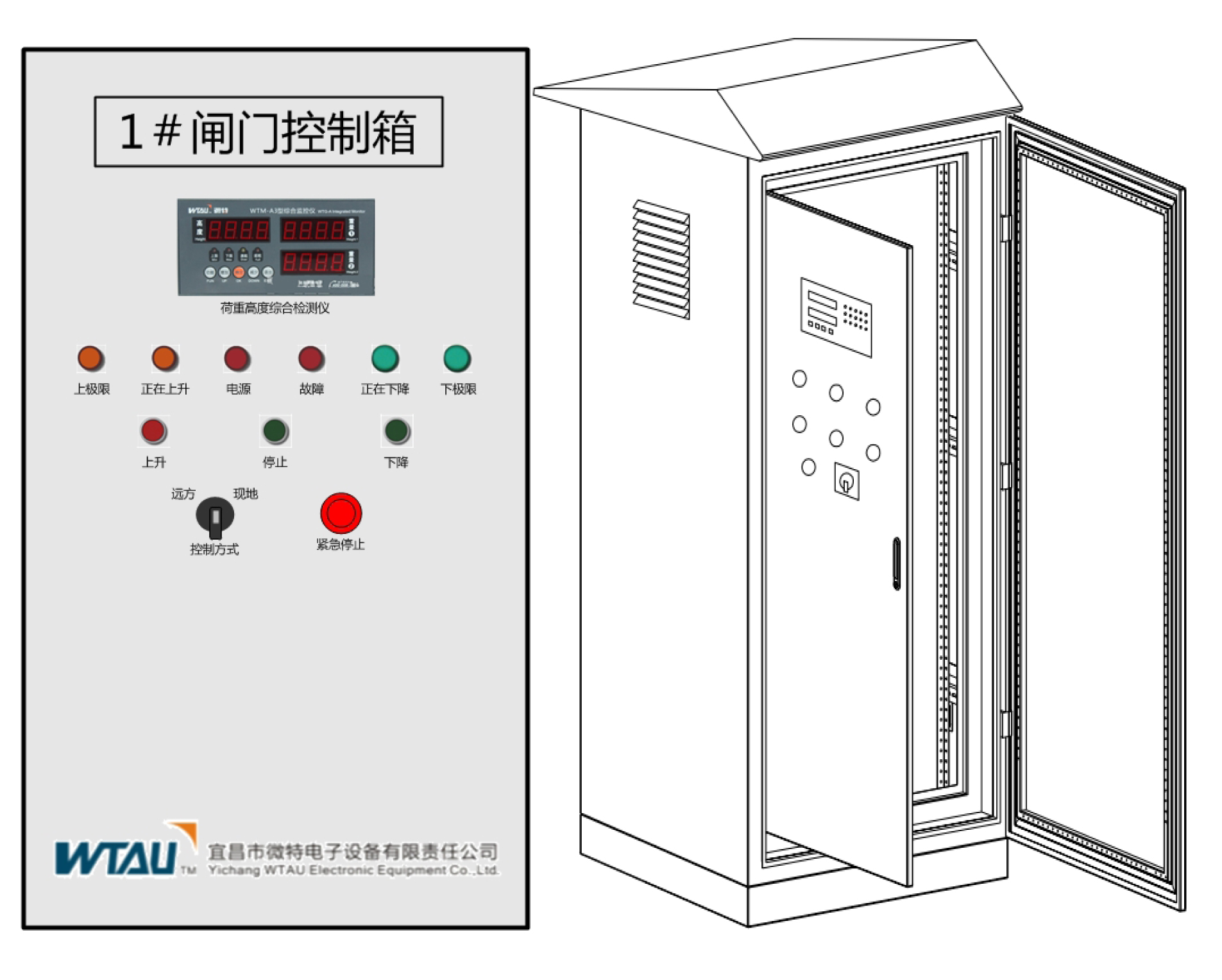 下圖為我公司設(shè)計的針對室內(nèi)型啟閉機(jī)的控制柜,柜體大小根據(jù)啟閉機(jī)電機(jī)容量決定。如是室外型啟閉機(jī),控制箱則換成不銹鋼材質(zhì)室外型。如下圖:
