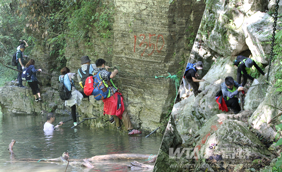 過天梯、攀索鏈、手腳并用、鍛煉著每個人的意志和膽量,在大家共同的努力下終于走出峽谷。