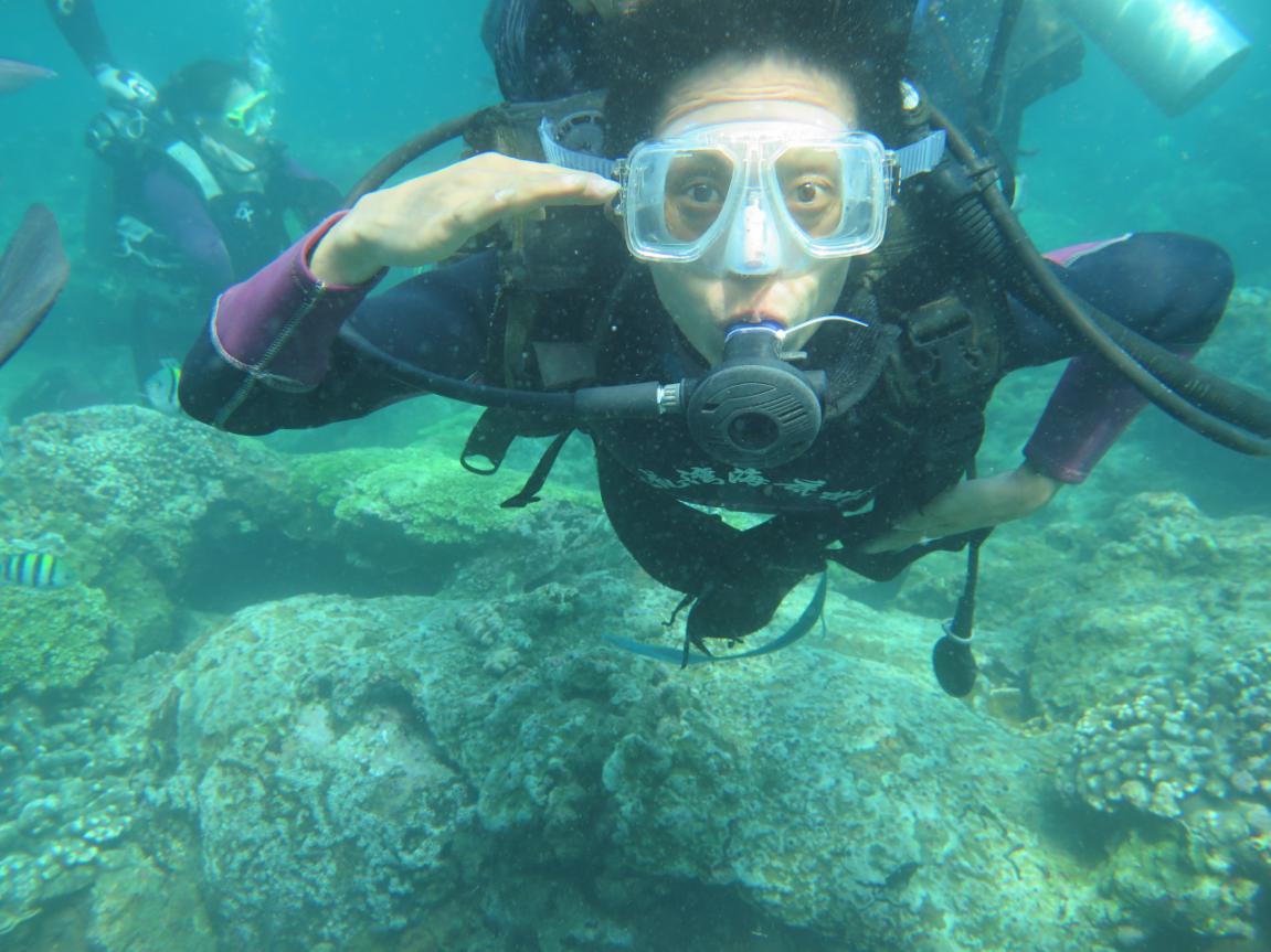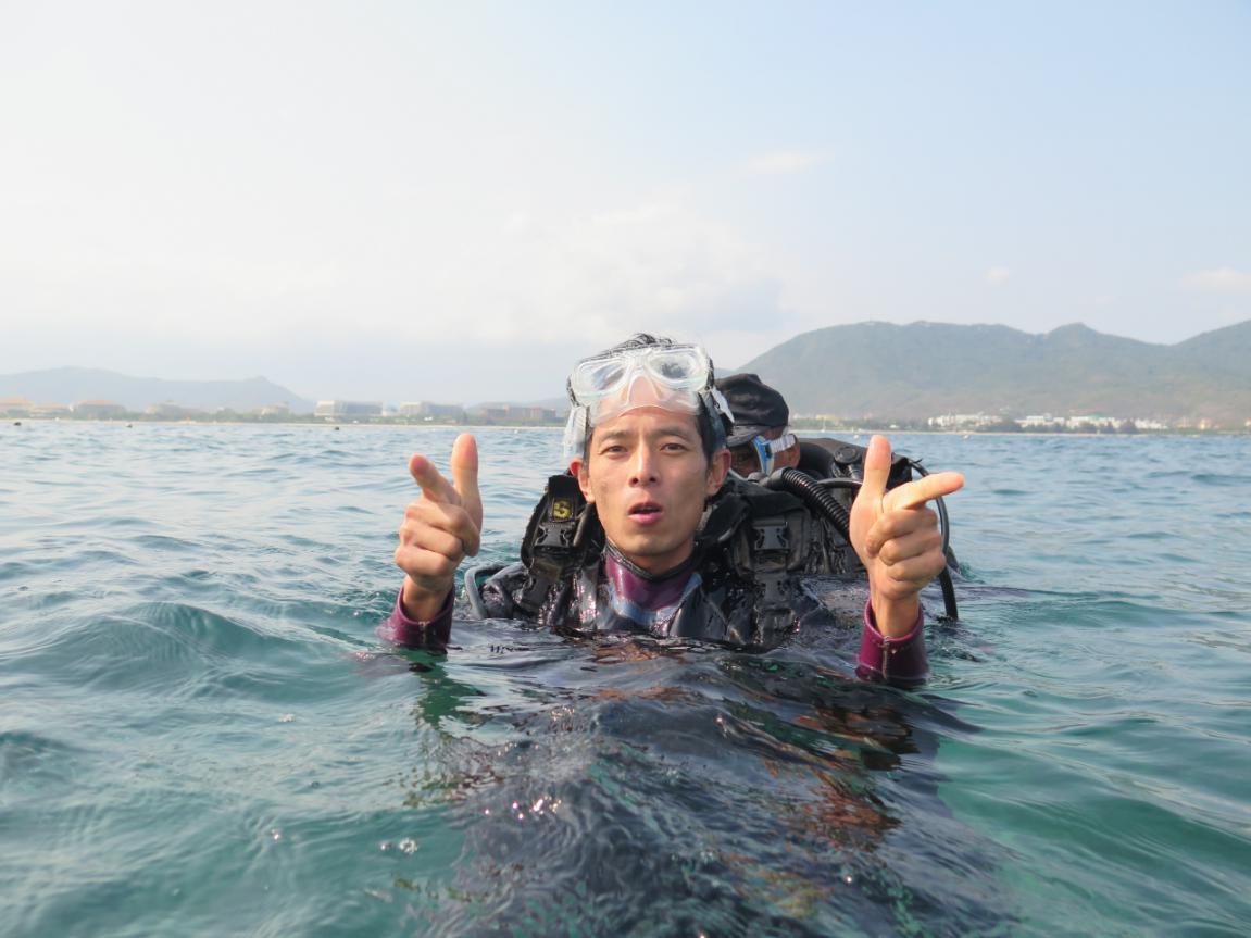 第一次水肺裝備下潛還是有些激動的,下潛到3米就開始感覺到水的壓力,到5米時就很明顯感受到水壓沖刺耳膜了,而且水越深溫度越低,我實在是抵不過這個溫度了,上來整個人都開始哆嗦了。