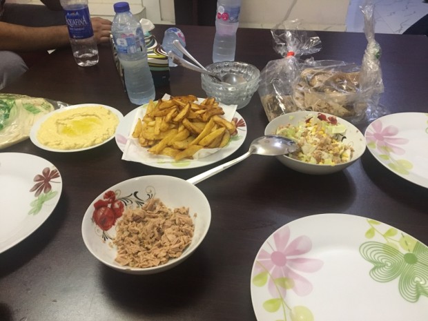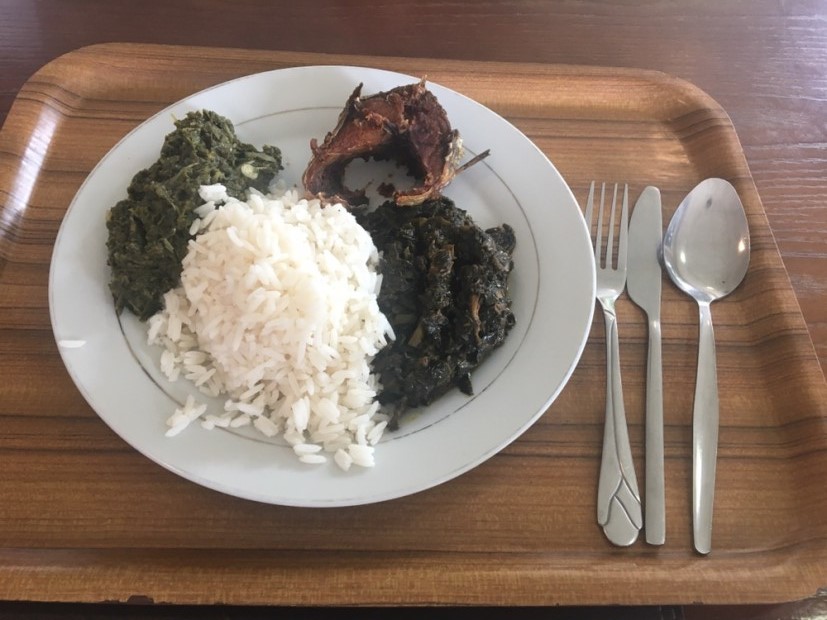 在尼日尼亞的第一餐,因?yàn)轲I了,所以吃到一半才記起拍個(gè)照片,對(duì)面的同事很厲害,已快速解決了。味道“國內(nèi)的東西還是好吃些”