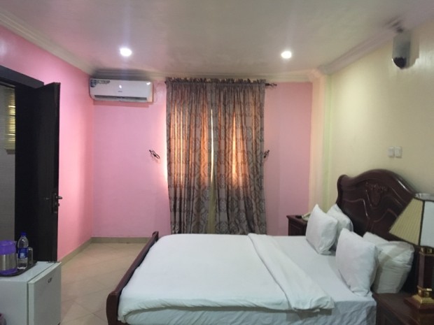 抵達(dá)酒店,據(jù)說這里相對(duì)安全一些。還碰到一間粉色的房間,運(yùn)氣還不錯(cuò)