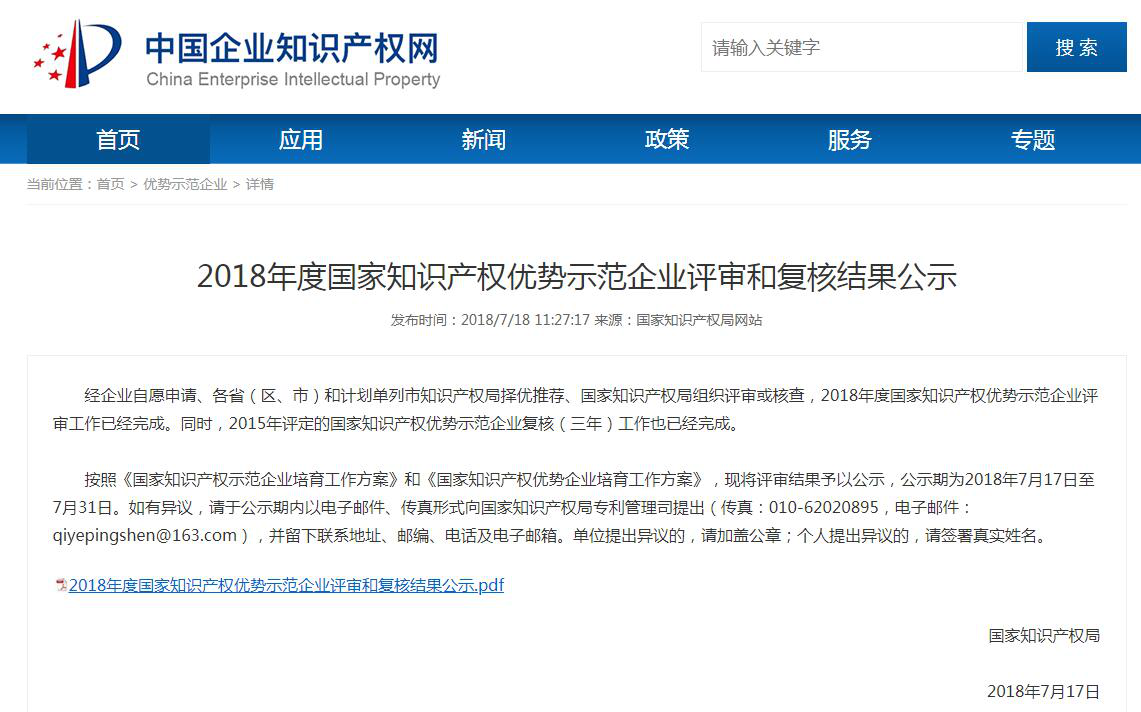 2018年8月15日,國家知識產權局發(fā)布國知發(fā)管函字〔2018〕158號文件《關于確定2015年度國家知識產權示范企業(yè)和優(yōu)勢企業(yè)通過復核企業(yè)及2018年度國家知識產權示范企業(yè)和優(yōu)勢企業(yè)的通知》,微特入選國家知識產權優(yōu)勢企業(yè)。